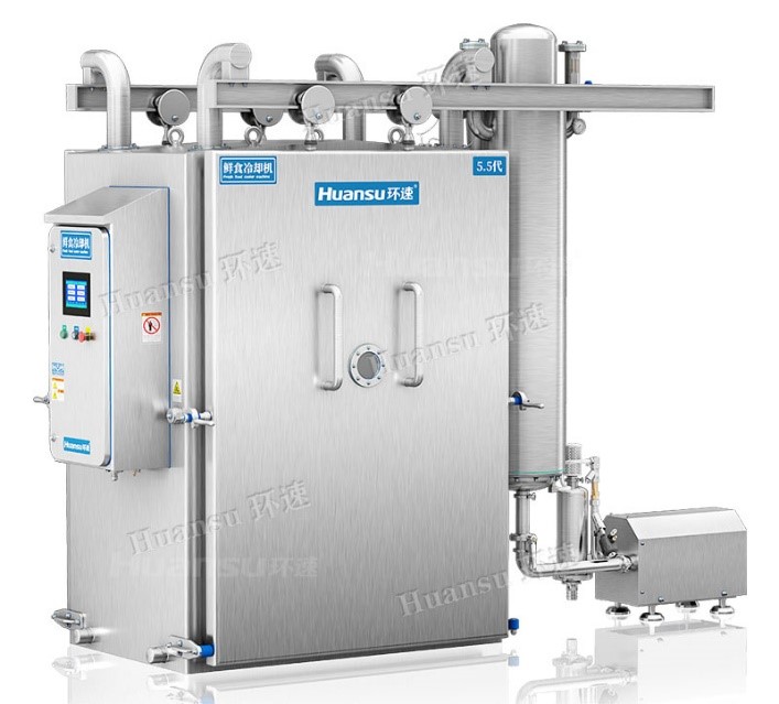 為此環(huán)速研發(fā)的果蔬真空預冷機便使用真空冷卻裝置將果蔬放入真空室內,在短時(shí)間內便可將帶有田間熱的果蔬冷卻到常溫狀態(tài)下,使果蔬不產(chǎn)生呼吸作用,進(jìn)入休眠狀態(tài)。根據不同種類(lèi)的果蔬而定,降到20°C-25°C僅需3-10分鐘,降到10°C以下需要8-18分鐘。果蔬在冷卻過(guò)程中全程處于密閉無(wú)菌的狀態(tài)下,不用擔心細菌滋生的問(wèn)題。與其他傳統冷卻方式相比,使用真空預冷機進(jìn)行果蔬的預冷可以快速度過(guò)高溫氧化期,使果蔬繼續保持色澤鮮亮的狀態(tài),避免了果蔬在20°C-50°C的細菌快速繁殖的溫度帶,延長(cháng)了果蔬的保質(zhì)期,因為沒(méi)有細菌繁殖,因此無(wú)需添加任何防腐劑,使得果蔬等產(chǎn)品成為了真正意義上的“綠色食品”。使每位消費者都可以吃的放心,不再擔心衛生細菌問(wèn)題。